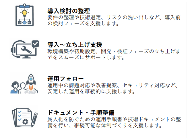 メタテクノは販売代理店として、導入検討から運用まで一貫して支援し、組込みLinuxの実装・運用知見を活かしたサポートを提供します。